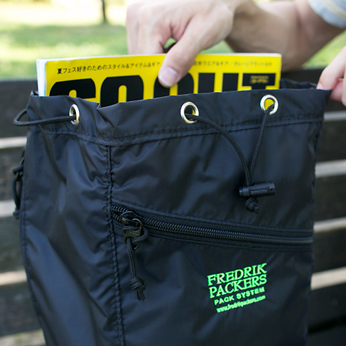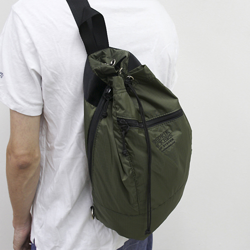 巾着仕様の開口で荷物の出し入れが容易。軽量。