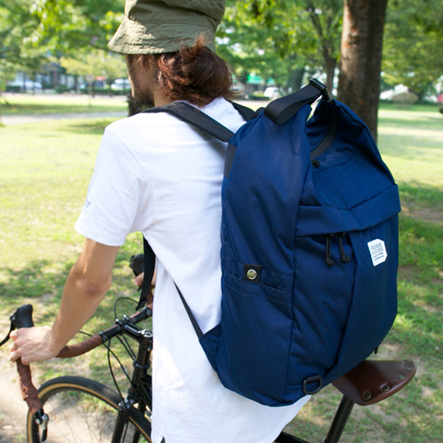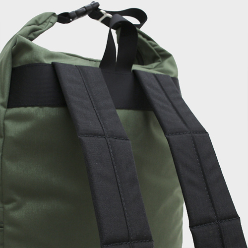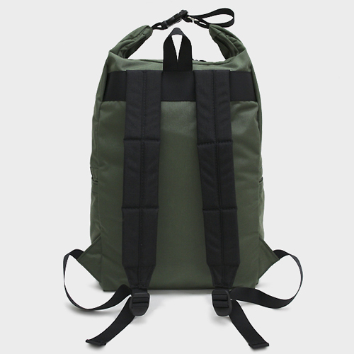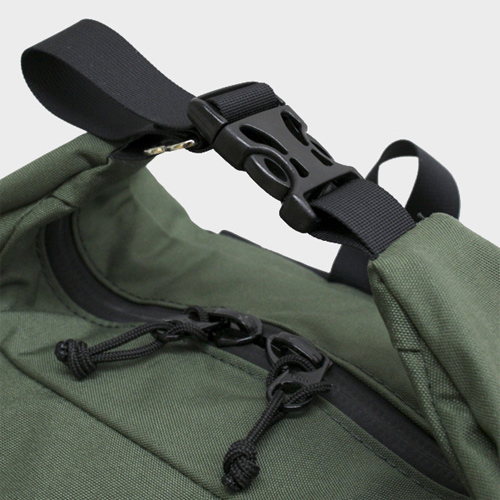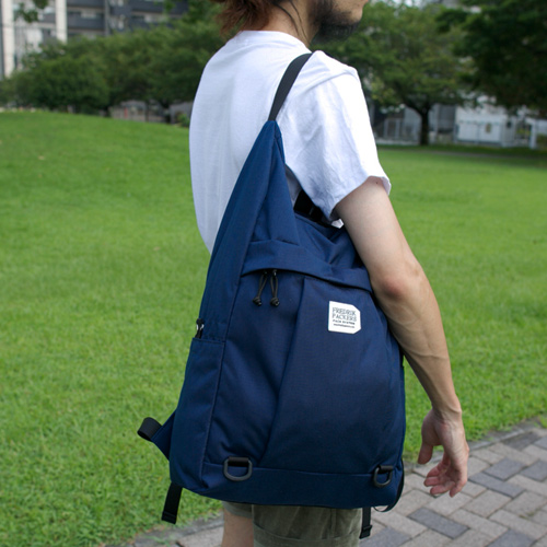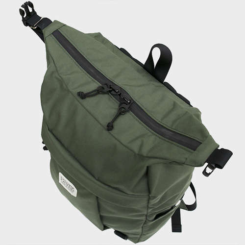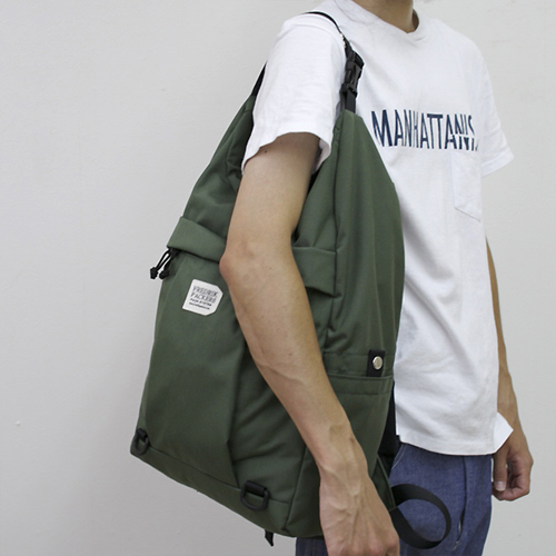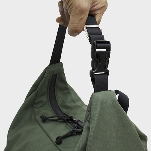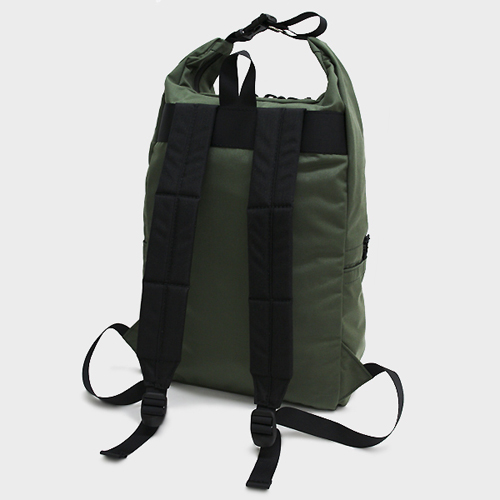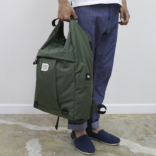 手持ち、肩がけ、背負いができる3WAY仕様。上部バックルの留め外しによる多彩な表情。